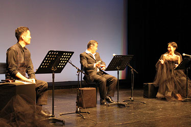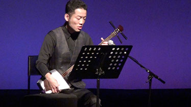 新内剛士さんは、去年は飛び入りで三味線での参加でしたが、今回は朗読にも加わっていただきました。BGMはバッハの無伴奏チェロ。